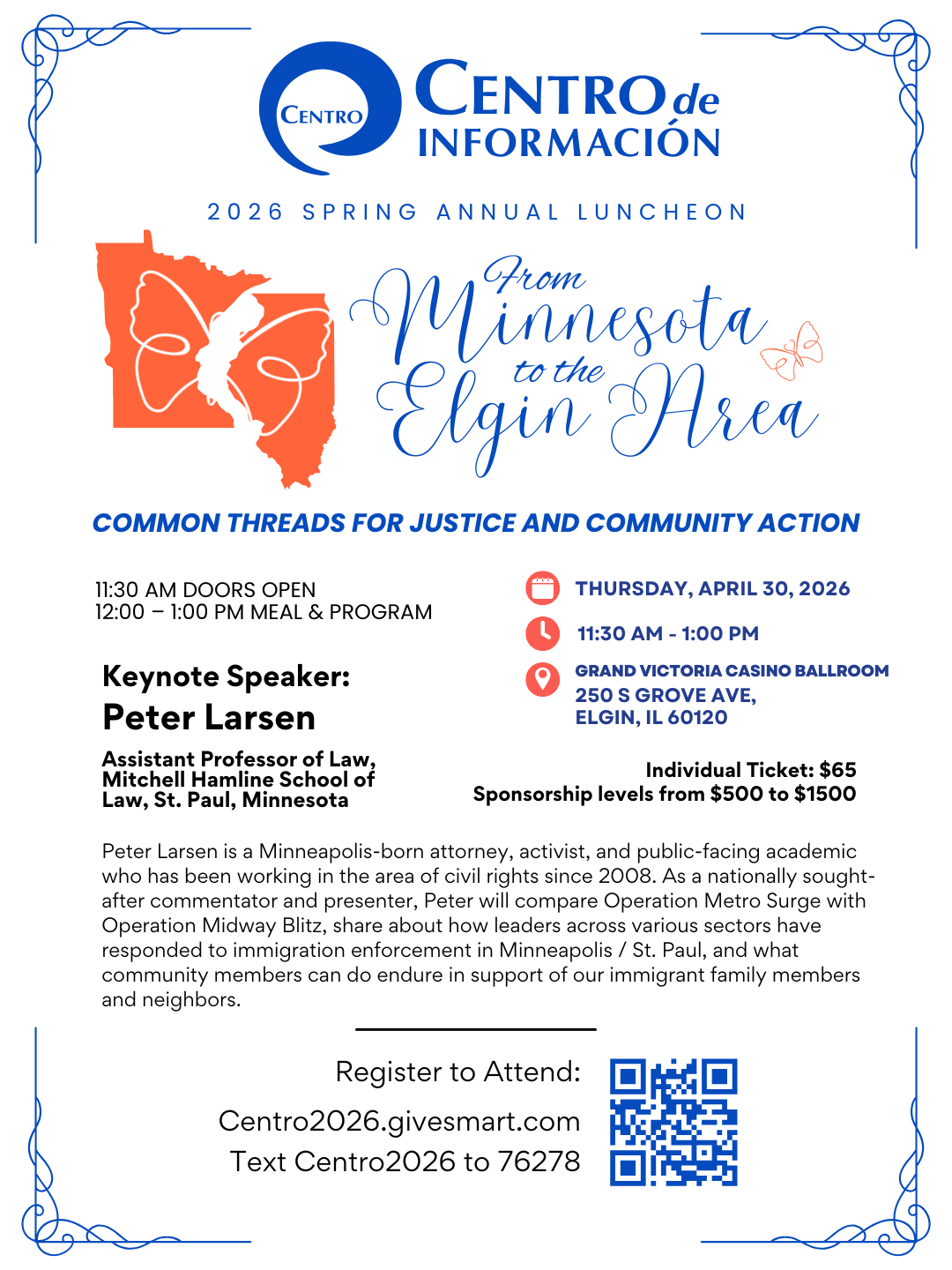 Centro de Información’s 2026 Fundraiser Gala, Uniting the Community in Joy, brings together supporters, leaders, and advocates to celebrate and strengthen the Latino and immigrant community. Join us for an inspiring evening that helps fund essential services including immigration support, public benefits assistance, education programs, and community resources. Your participation helps us continue empowering families and building opportunities for a stronger, more united community.