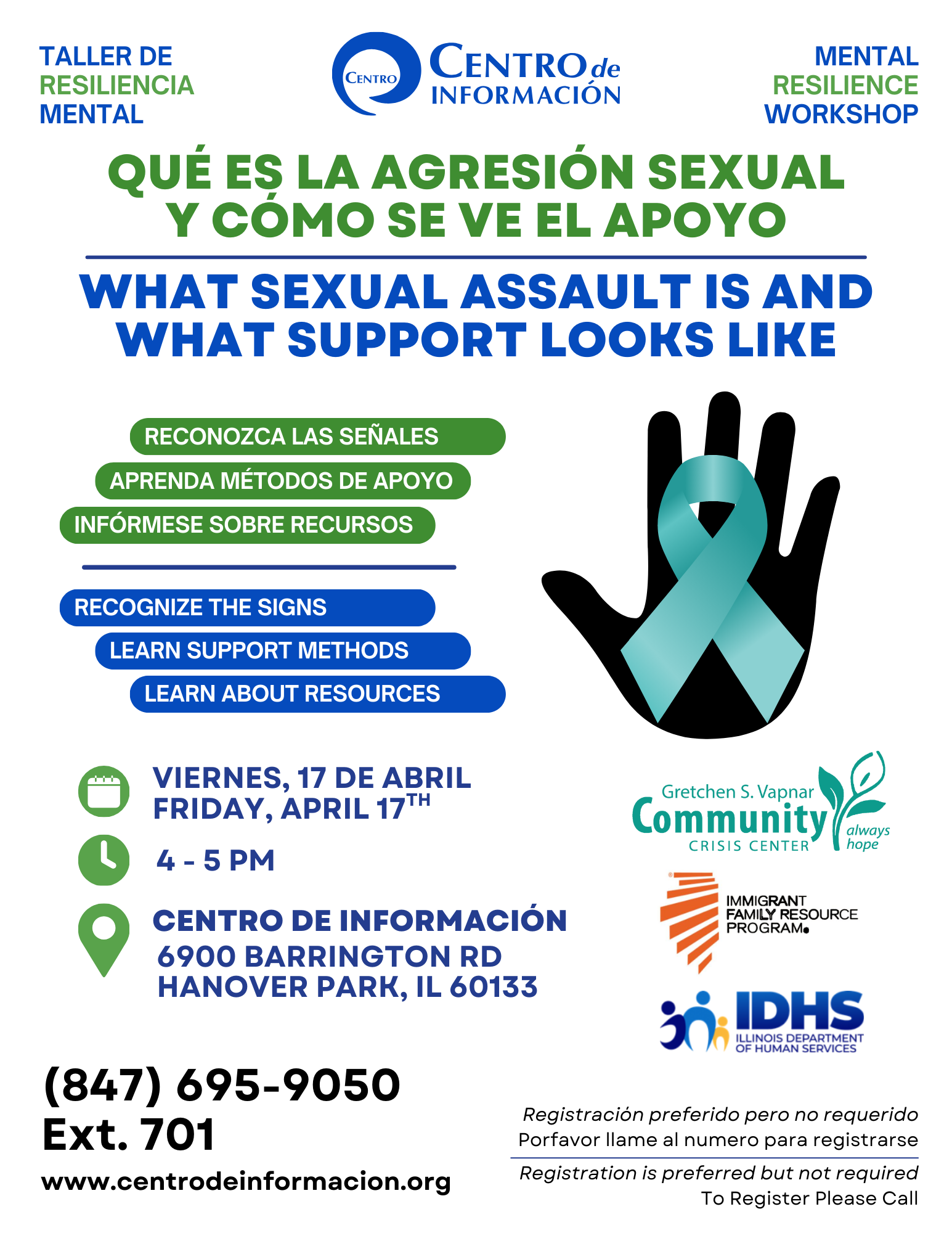 • Centro de Información 6900 Barrington Road Hanover Park, IL, 60133 United States (map)